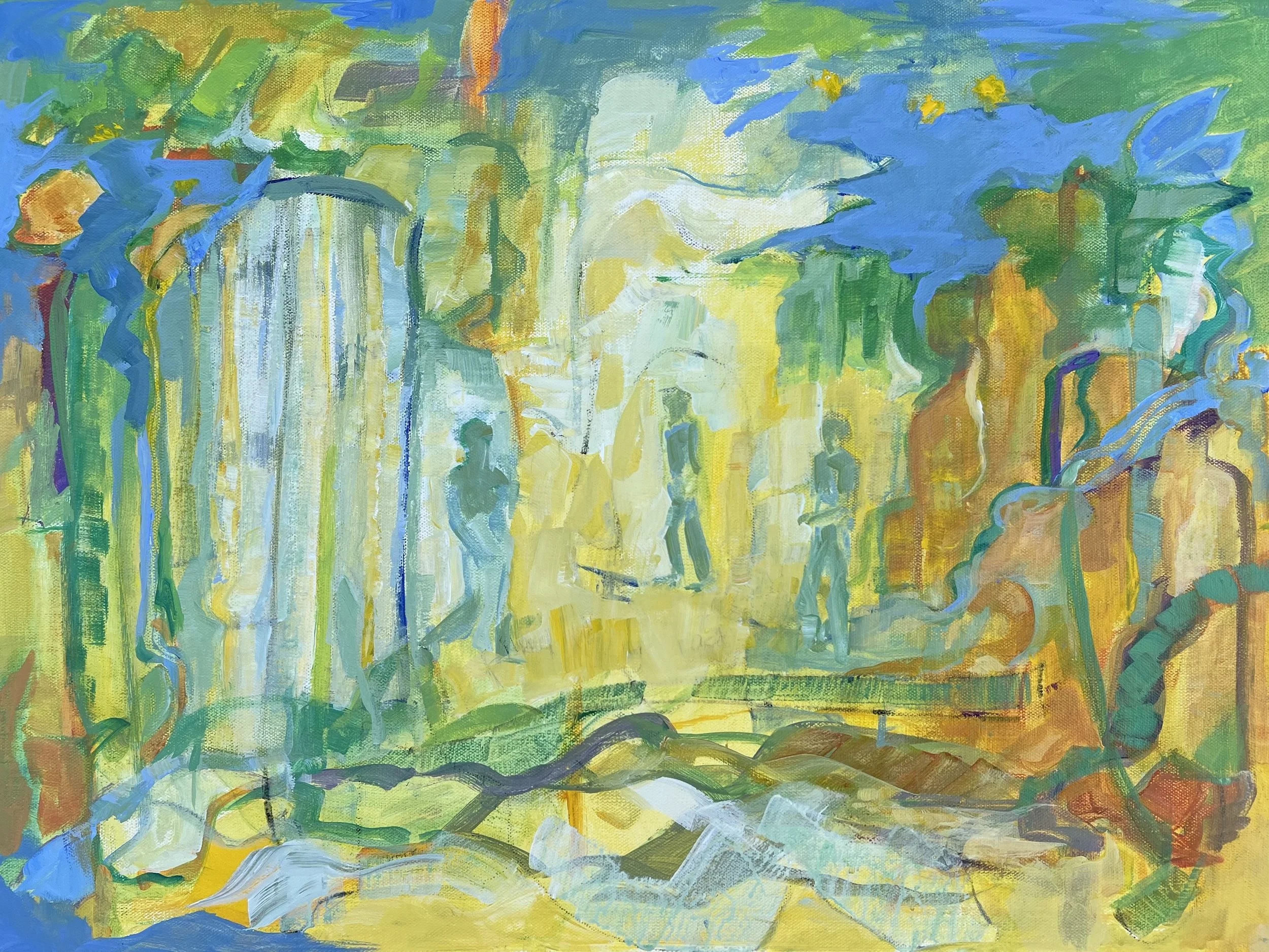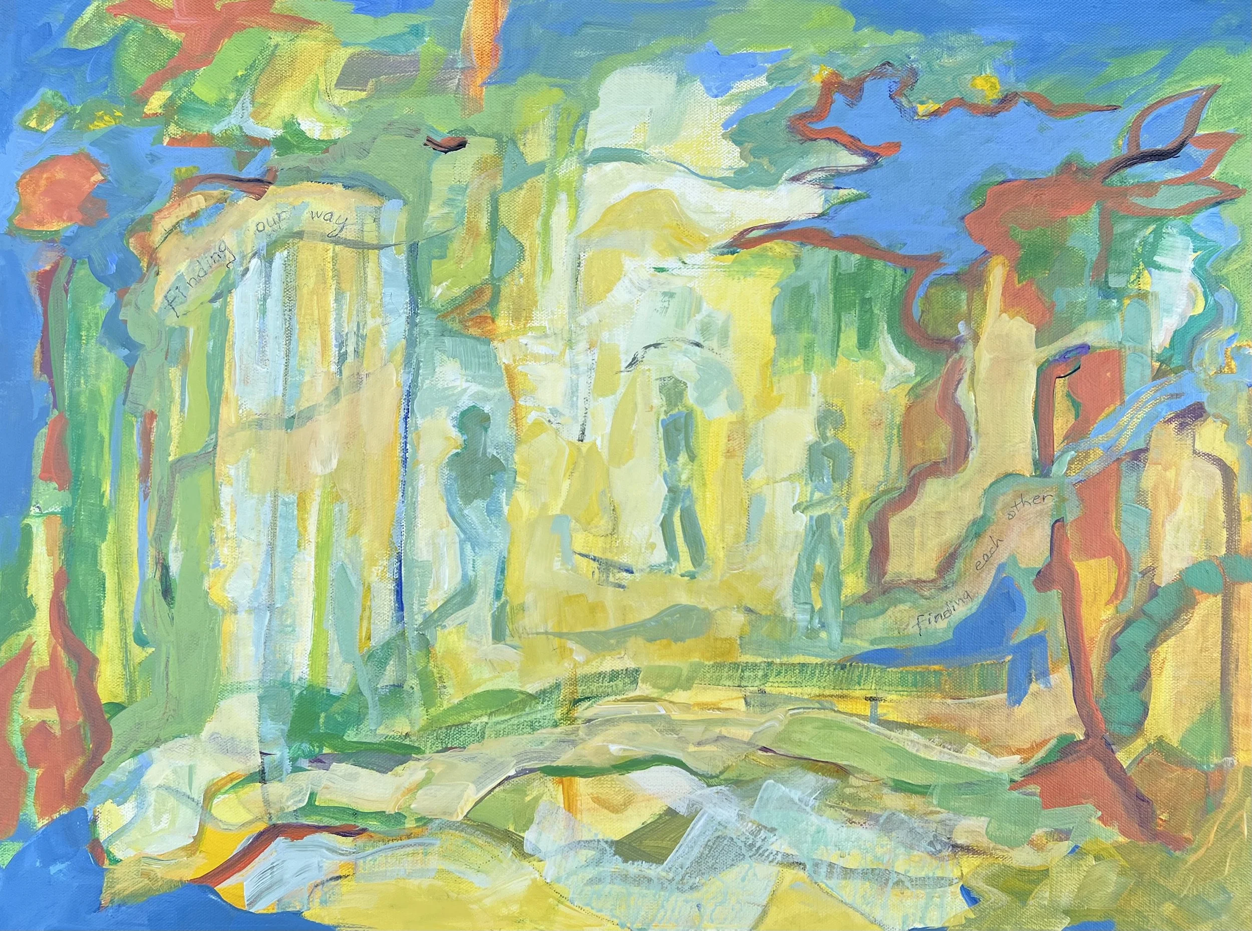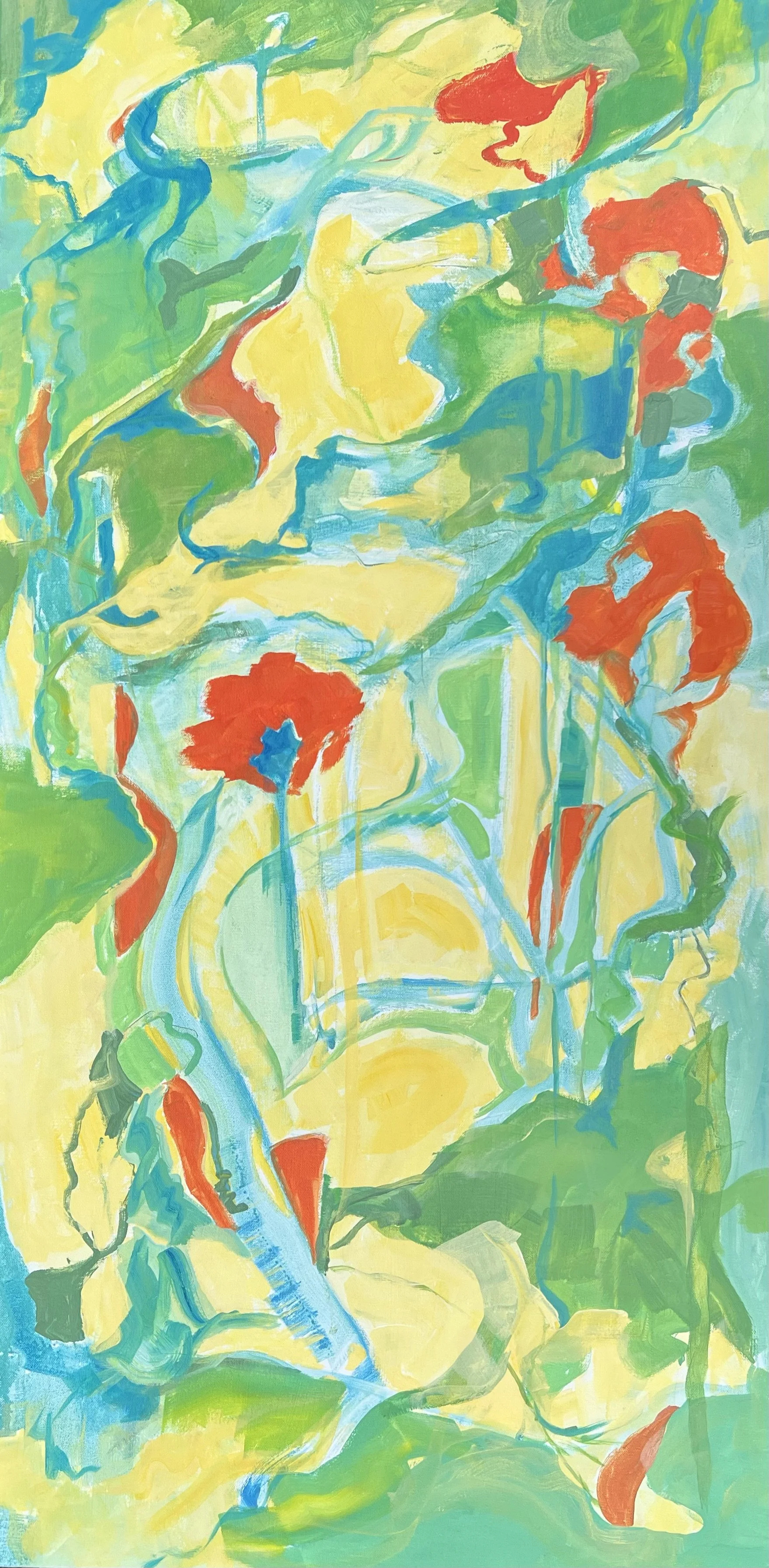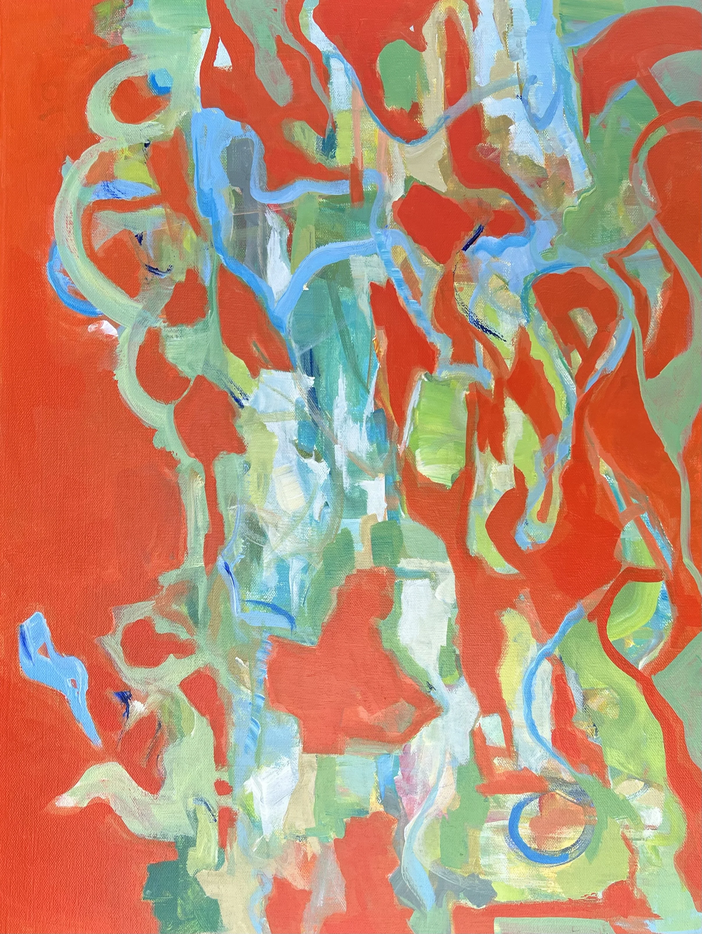 Often abstracting an experience helps me combine both external and internal input. I look out. I look in. And then lines, shapes and colors help me place this union on the canvas.