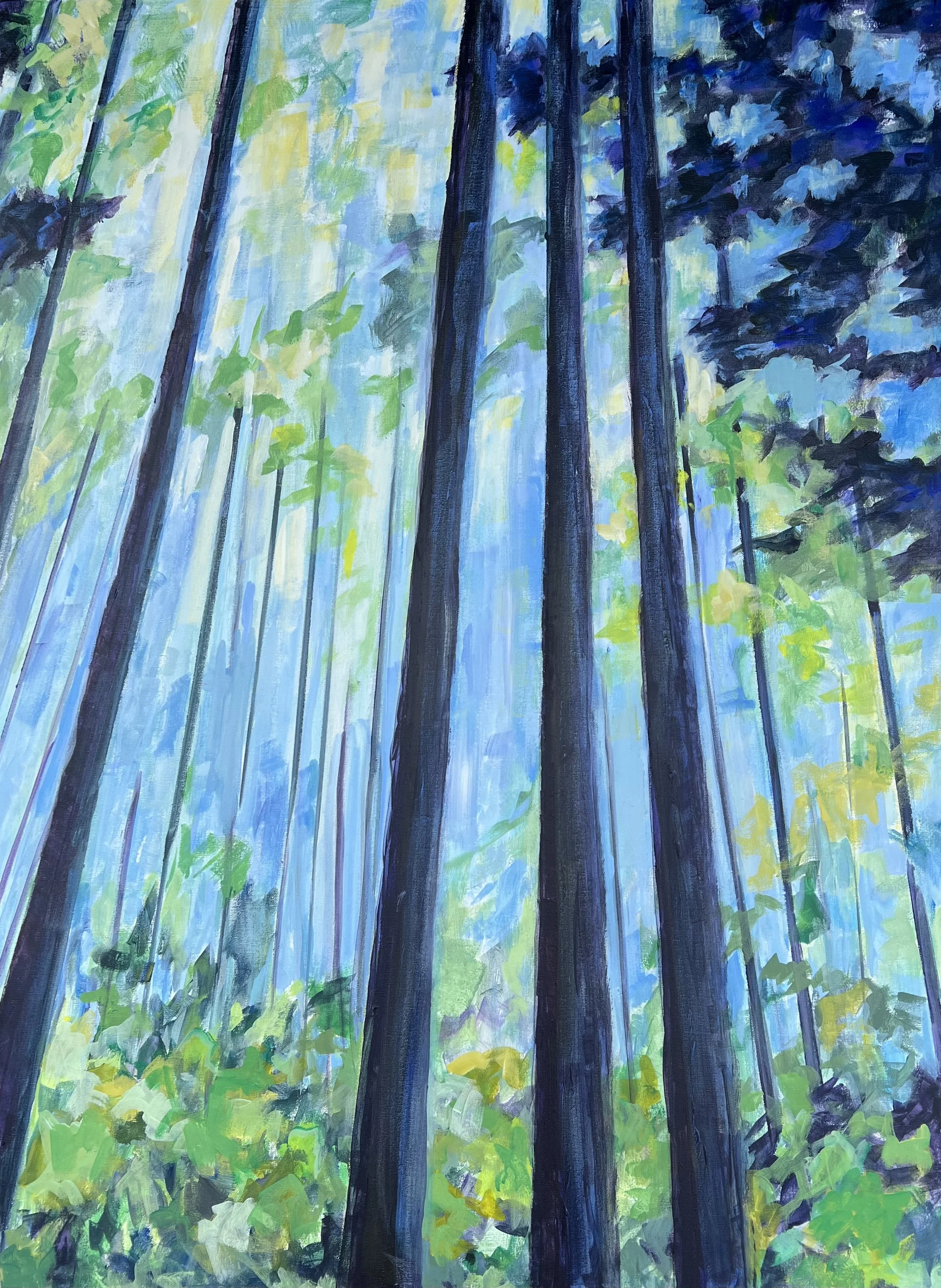 More and more, I choose to spend time in nature. I want to move outside the walls of devices and buildings, and instead, reconnect with trees, air, water, and myself. Often, that longing becomes what I paint.