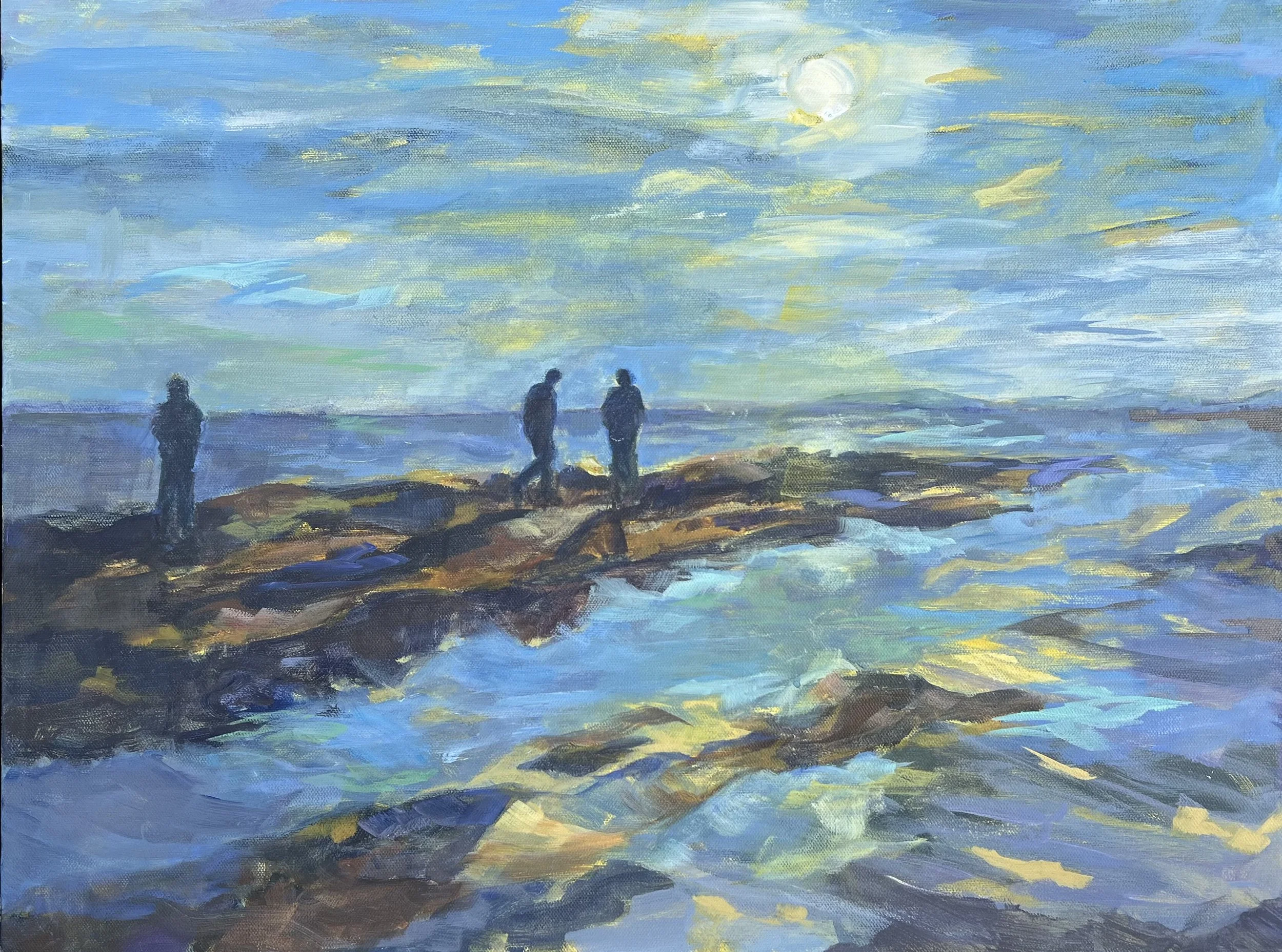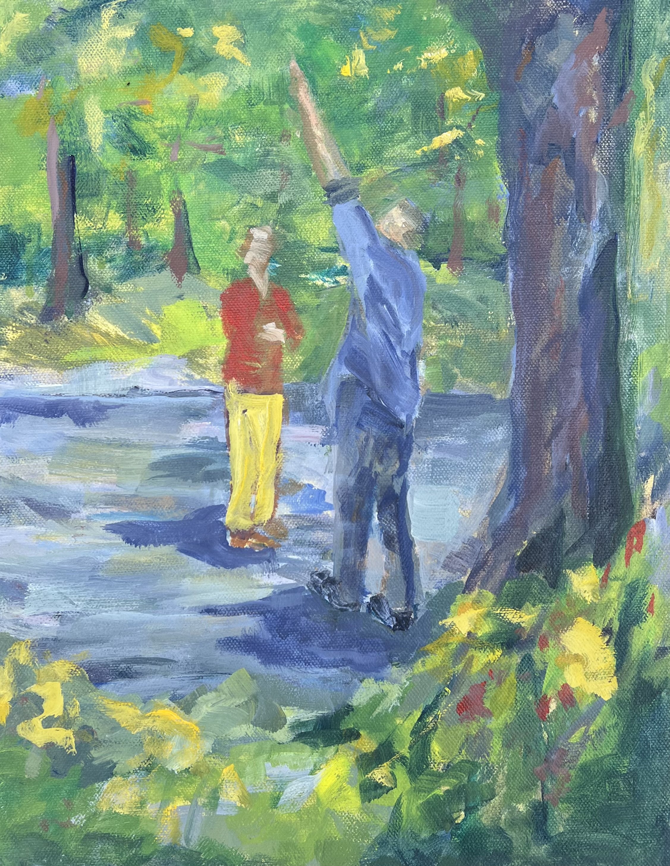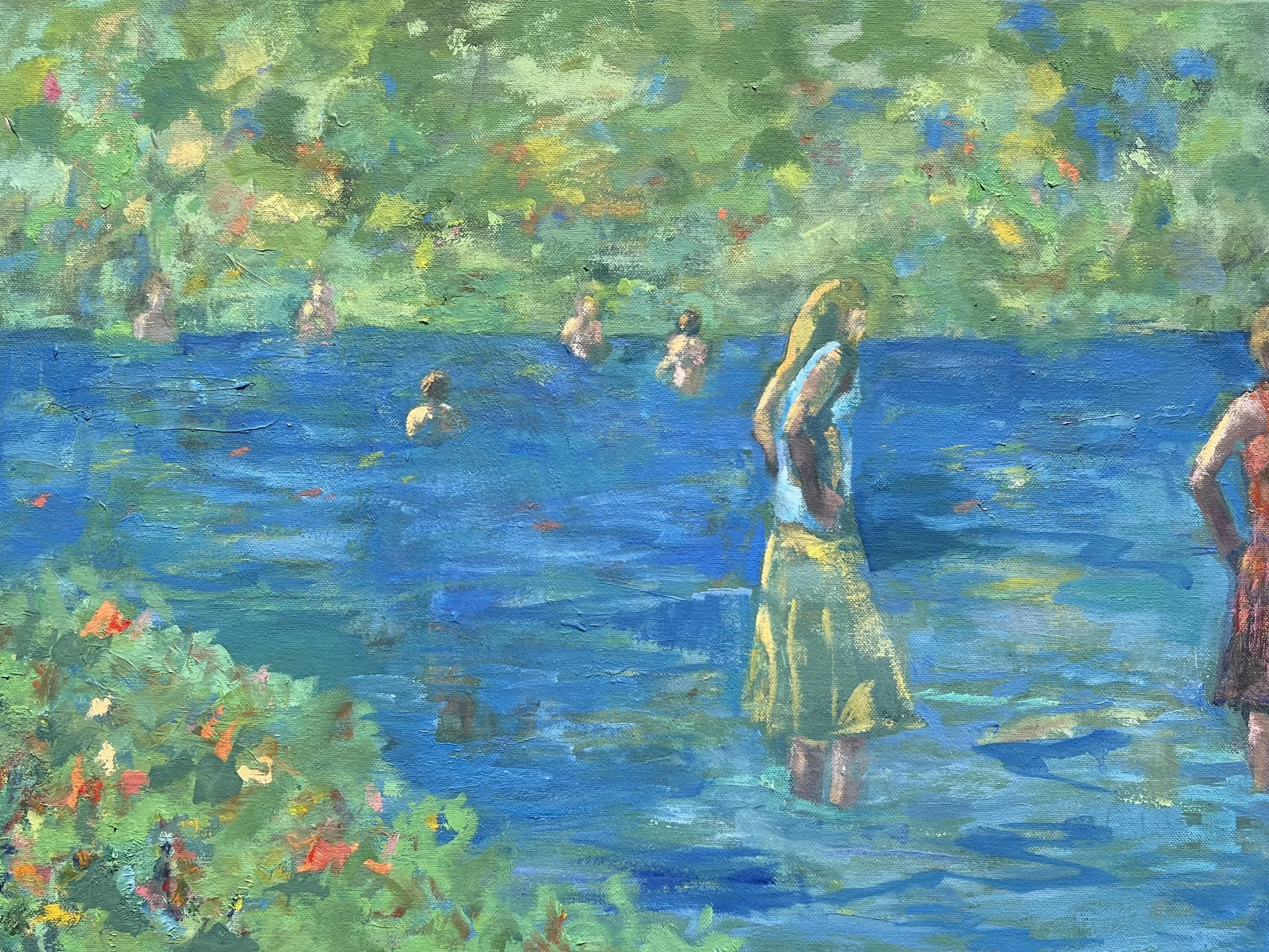 Figurative art draws my eye and often my heart. I appreciate paintings of people in nature, or what I think of as peopled landscapes. I love moments when rather than dominating nature, people seem to become elements within it.